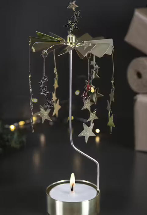 Versier je huis met onze draaiende angel chime in gouden metalen design Night sky! Dit ontwerp is groter en geschikt voor een groot theelichtje. Wordt geleverd in een mooie doos, een perfect cadeau voor iemand die je leuk vindt!
