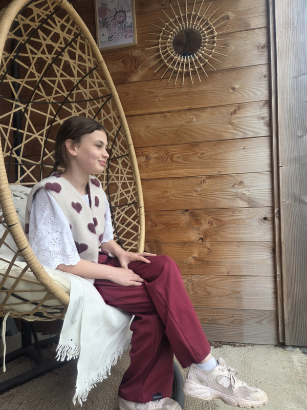 Prachtig gilet van teddy (100% polyester) met voering bordeaux (95% katoen + 5% elastaan Oekotex 100)
