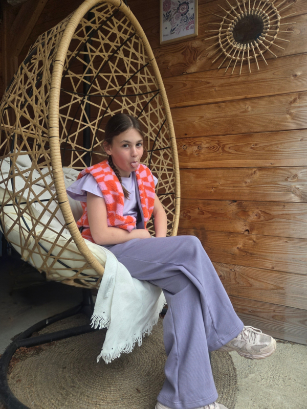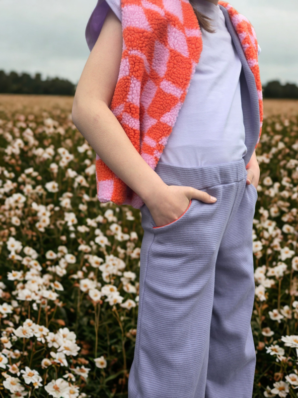 Prachtig gilet van teddy (100% polyester) met voering lila wafel (100% katoen Oekotex 100)