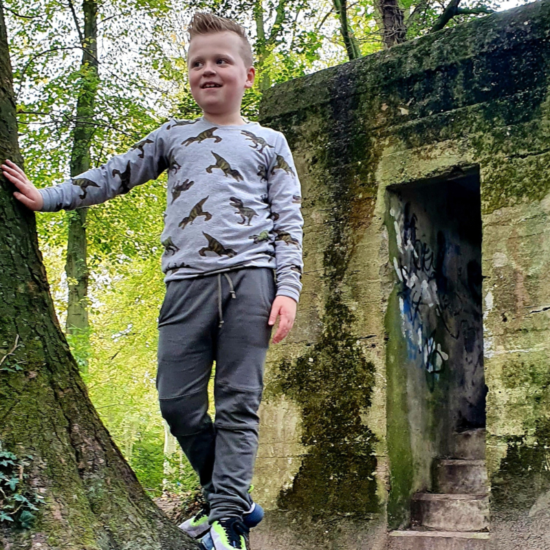 Sweater dino 74/80Sweatstof (95% katoen + 5% elastaan Oekotex 100) overall print t-rex